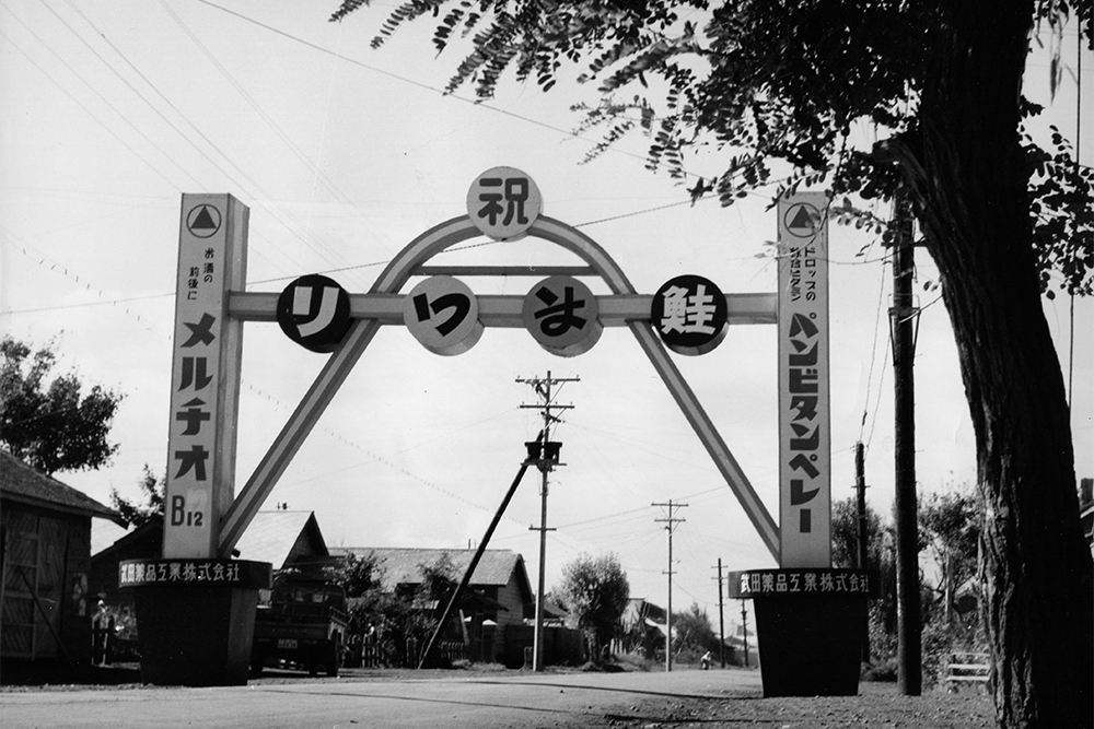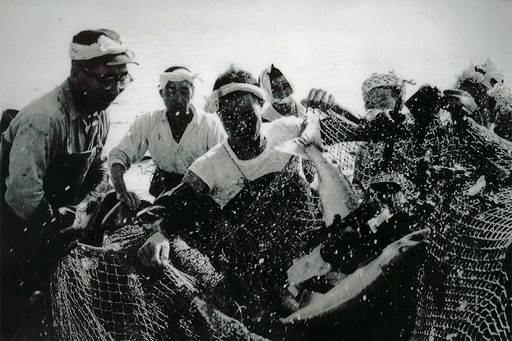 かつて石狩町は、サケ漁によって支えられてきた町でした。しかし戦後20年代になると不漁が続き、町は次第に活気を失っていきます。 「このままでは町がさびれてしまう」——そんな不安が広がっていました。そんな中、昭和29年(1954年)10月、石狩川河口に突然サケの群れが押し寄せます。この年は台風で青函連絡船・洞爺丸が沈没した年でもありました。石狩の浜は久しぶりの大漁に沸き、漁獲量は約13万5千尾。実に20年ぶりの豊漁でした。町には再び希望が生まれましたが、翌年は期待とは裏腹に不漁に終わり、「やっぱりだめか」「鮭に見放されてしまった町だ」そんな声さえ聞こえるようになっていました。そんな空気を変えようと立ち上がったのが、当時の町議会議員で石狩漁協組合長の吉田繁雄でした。昭和31年(1956年)8月の暑い昼下がり。役場で職員と雑談をしていた吉田は、うちわをパタパタさせながらこう言いました。「このままでは石狩がだんだんさびれてしまうぞ。どうだ、景気づけにさけ祭りでもやってみないか。」その場では冗談のように受け流されましたが、吉田はすぐに寄附集めに奔走します。その熱意に押され、役場職員や漁協、町民たちも次第に巻き込まれていきました。こうして第1回石狩さけまつりが、同じ年の秋に開催されることになったのです。