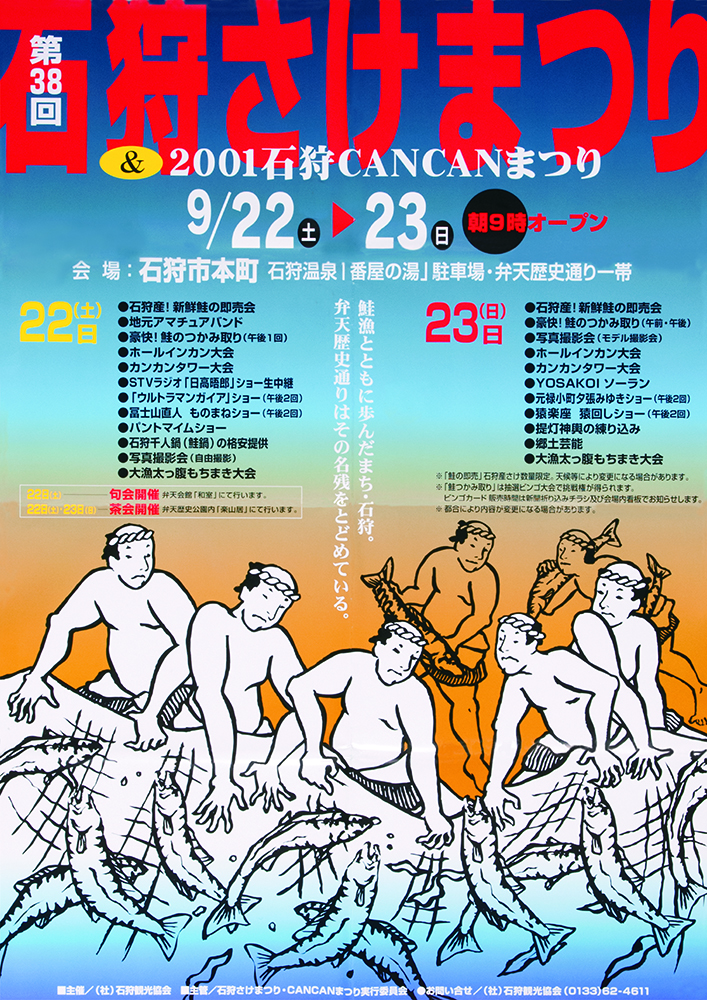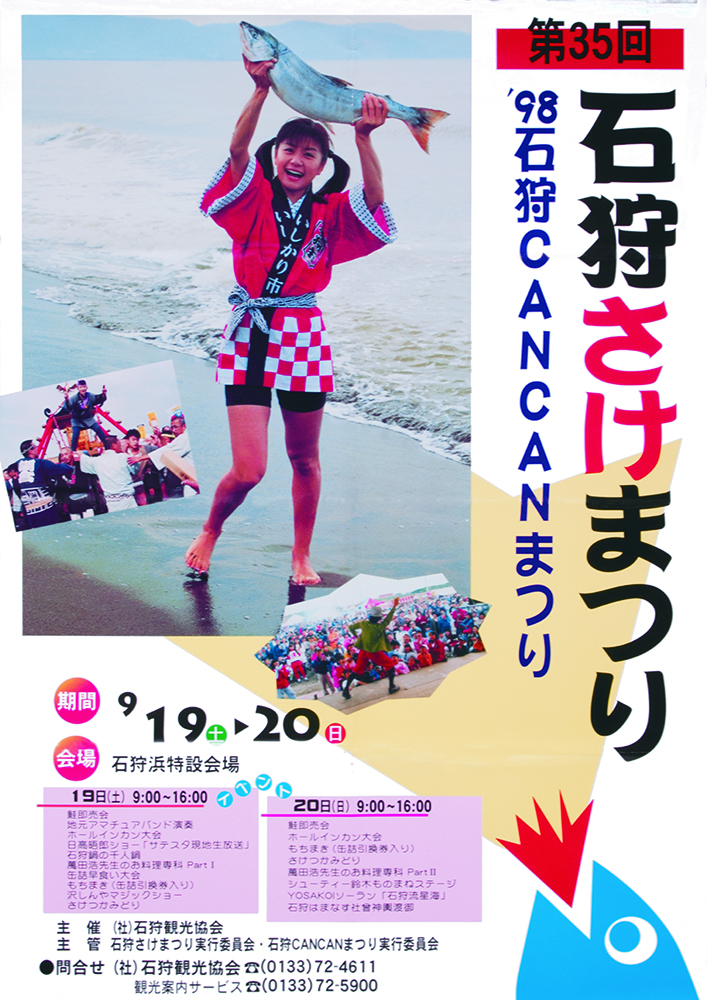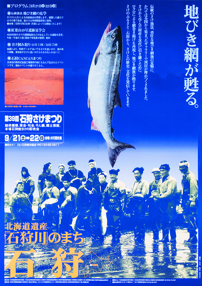 しかし石狩川の河川改修や水質悪化の影響でサケの遡上が減少し、昭和45年(1970年)第15回を最後に中断します。その後、千歳川での放流事業や水質改善によりサケは再び増え、昭和54年(1979年)、9年ぶりに石狩さけまつりが復活しました。復活した祭りでは、定置網で獲れたサケの即売や大鍋で作る石狩鍋が人気を集め、用意されたサケはたちまち完売。こうして石狩さけまつりは、サケとともに歩んできた石狩の歴史を今に伝える祭りとして、現在まで受け継がれています。