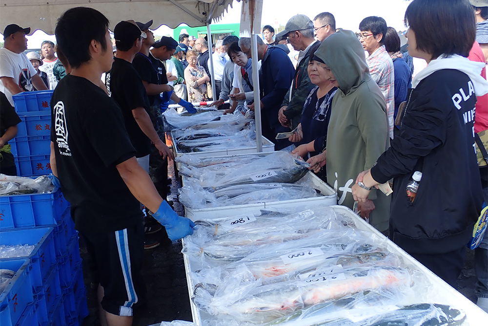 浜益産鮭の即売会