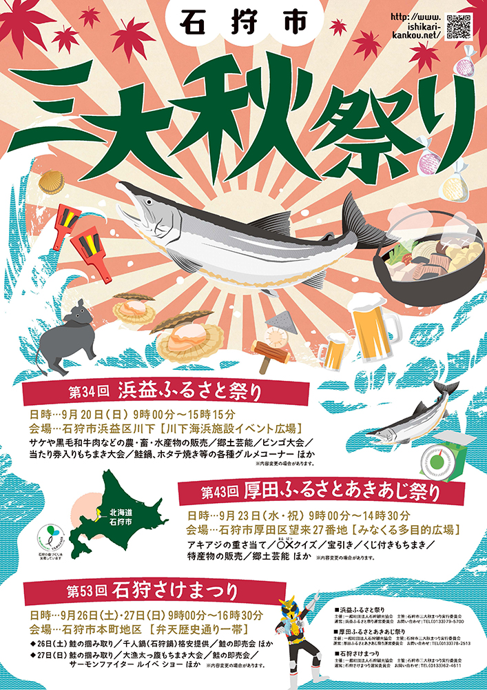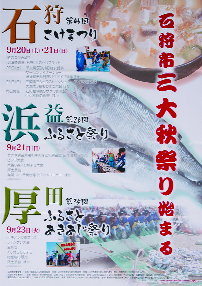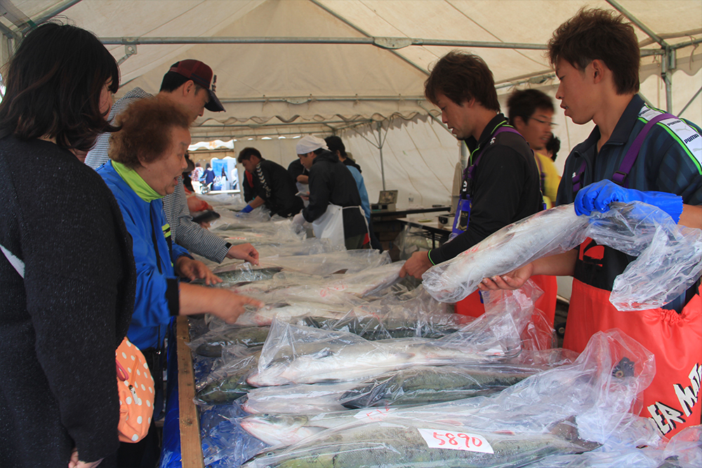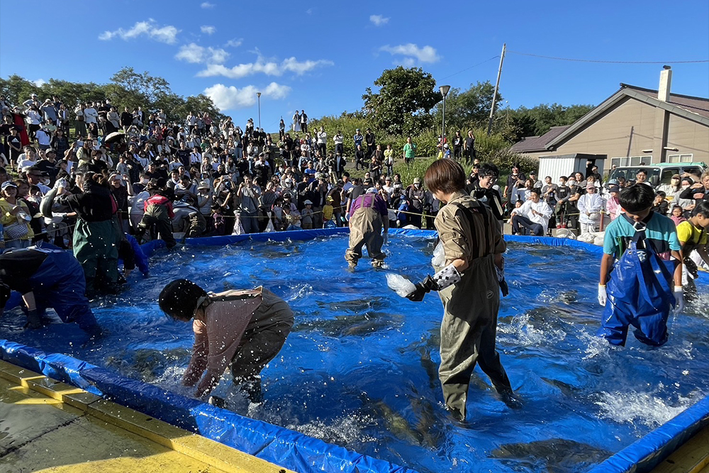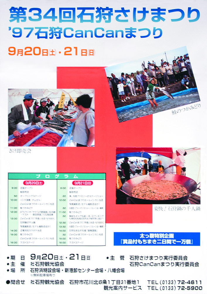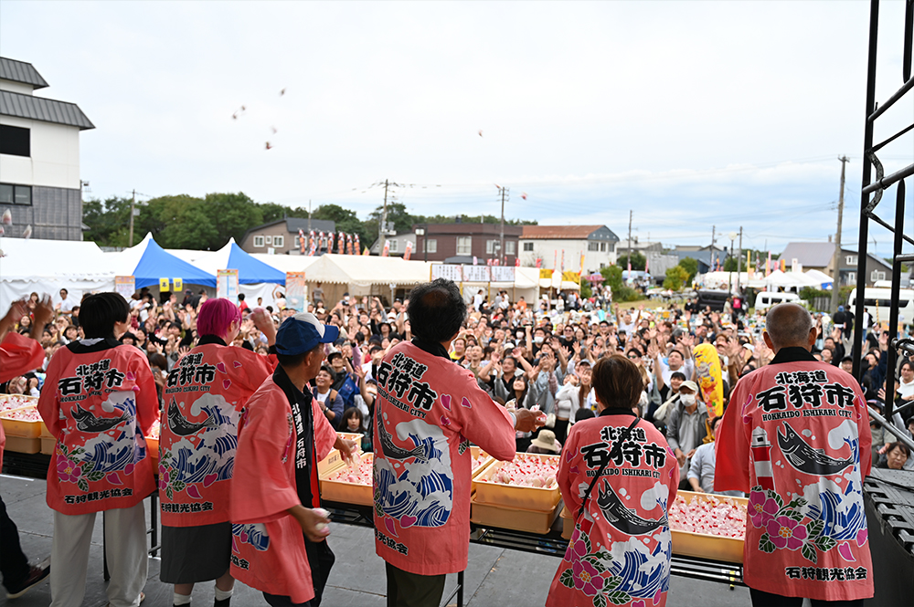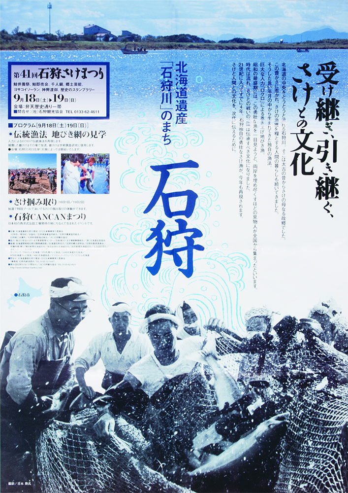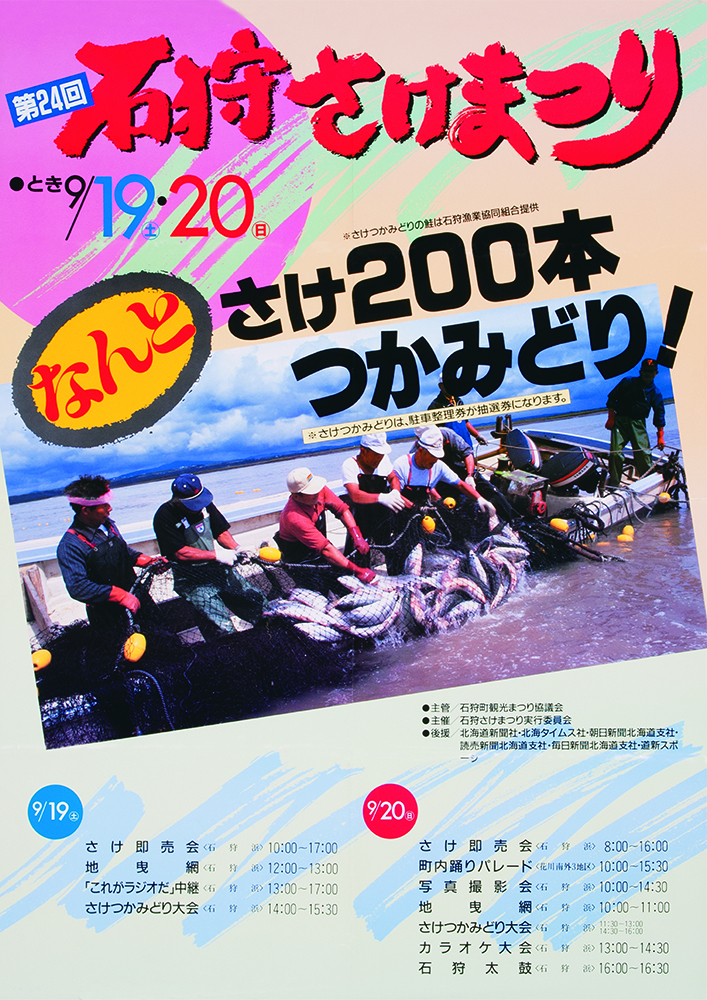 しかし石狩川の河川改修や水質悪化の影響でサケの遡上が減少し、昭和45年(1970年)第15回を最後に中断します。その後、千歳川での放流事業や水質改善によりサケは再び増え、昭和54年(1979年)、9年ぶりに石狩さけまつりが復活しました。復活した祭りでは、定置網で獲れたサケの即売や大鍋で作る石狩鍋が人気を集め、用意されたサケはたちまち完売。こうして石狩さけまつりは、サケとともに歩んできた石狩の歴史を今に伝える祭りとして、現在まで受け継がれています。